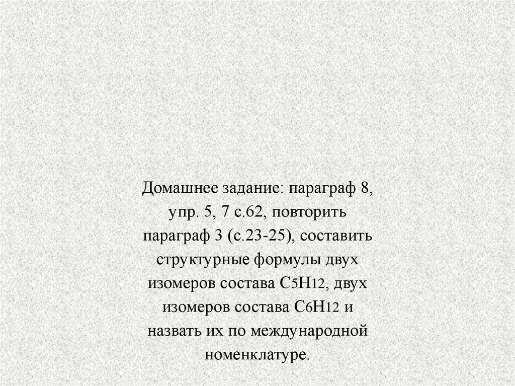 Домашнее задание: параграф 8,упр. 5, 7 с.62, повторить