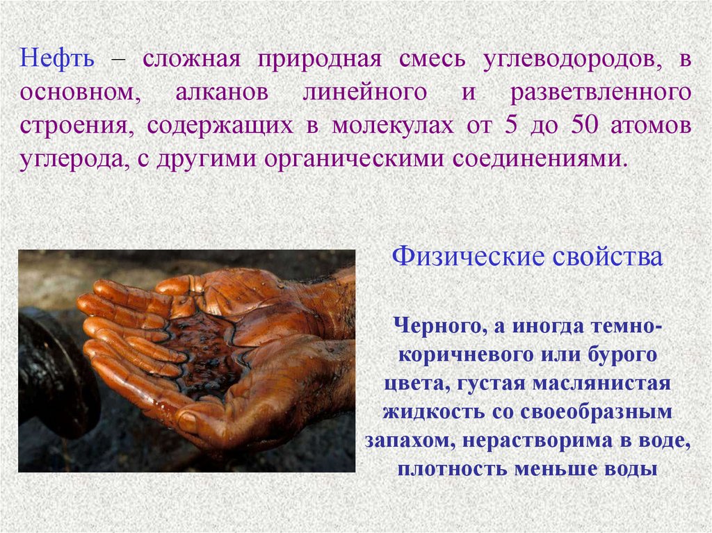 Нефть – сложная природная смесь углеводородов, восновном, алканов линейного и разветвленного