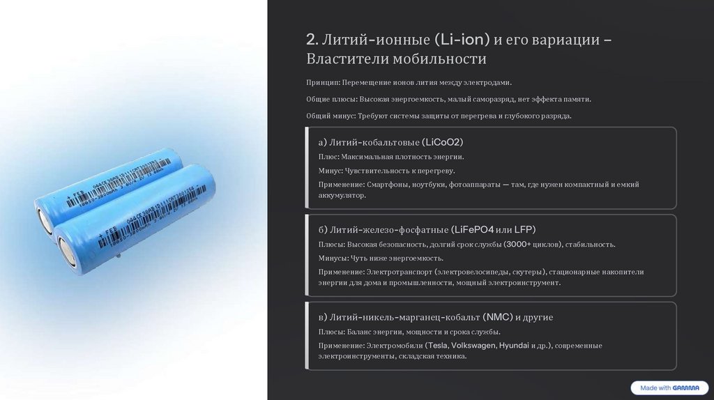 2. Литий-ионные (Li-ion) и его вариации –Властители мобильности