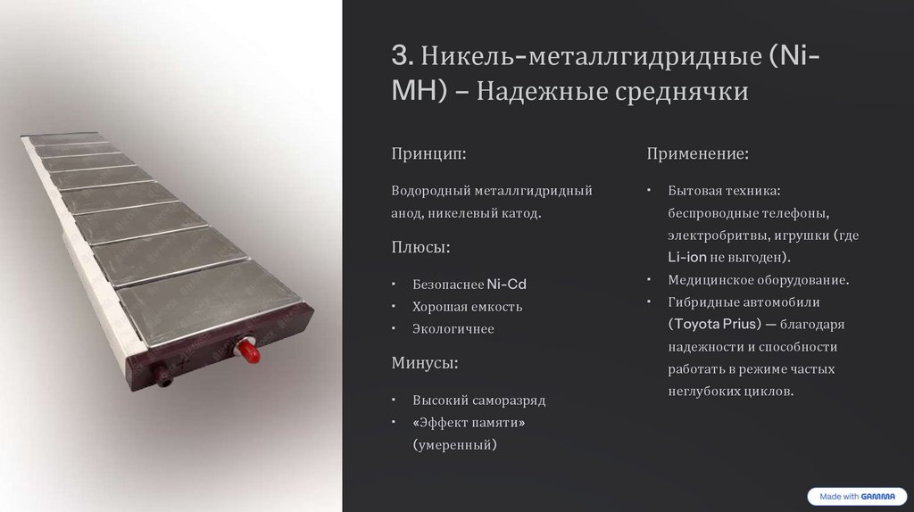 3. Никель-металлгидридные (NiMH) – Надежные среднячкиПринцип: