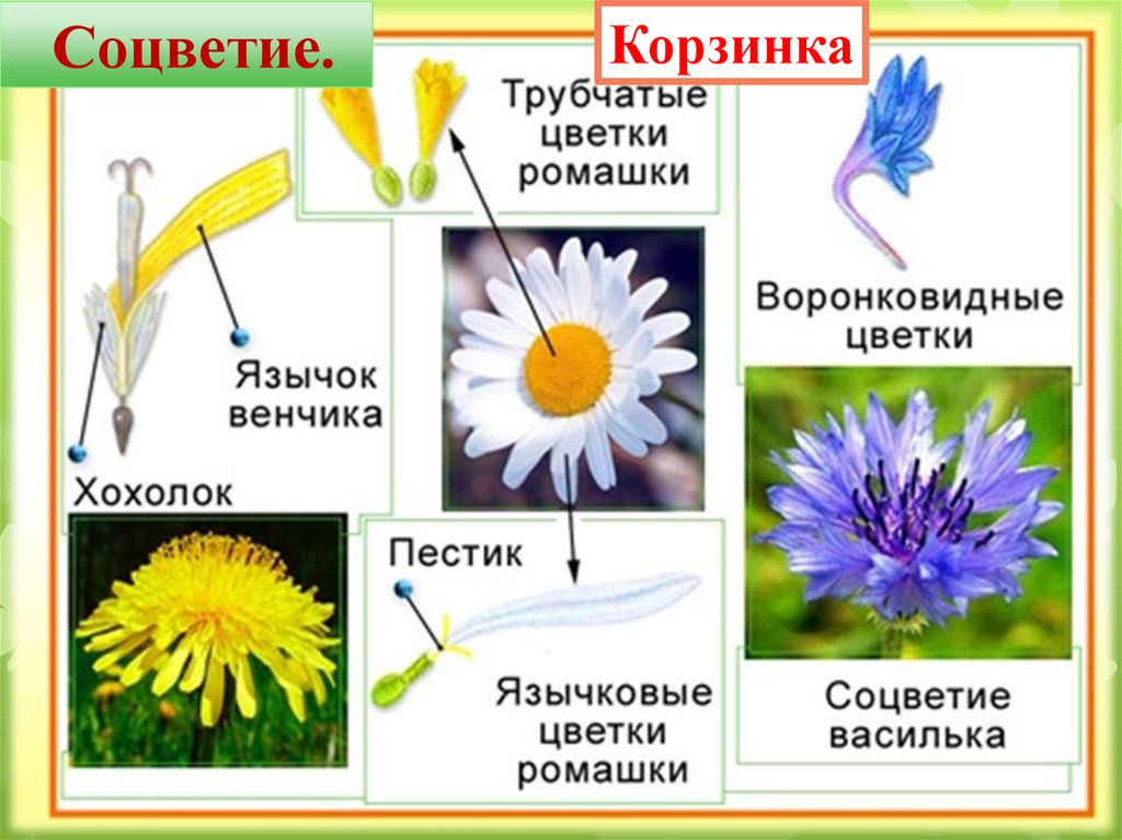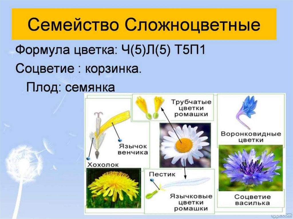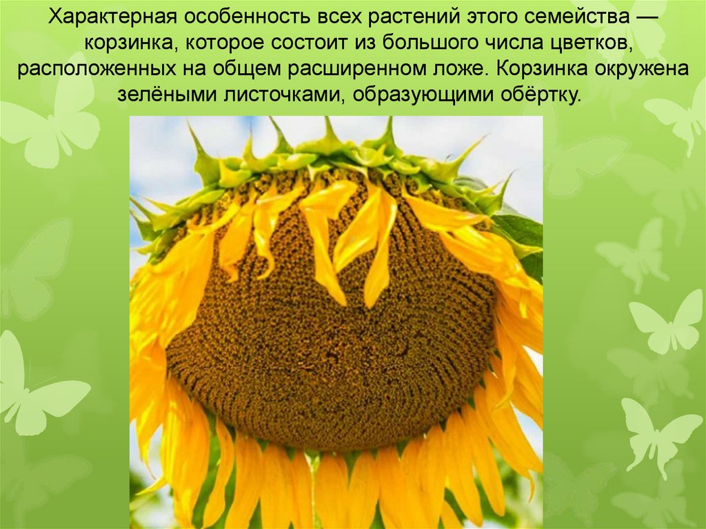 Характерная особенность всех растений этого семейства —корзинка, которое состоит из большого числа цветков,