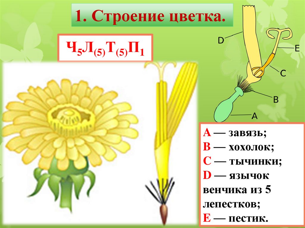 1. Строение цветка.Ч5Л(5)Т(5)П1
