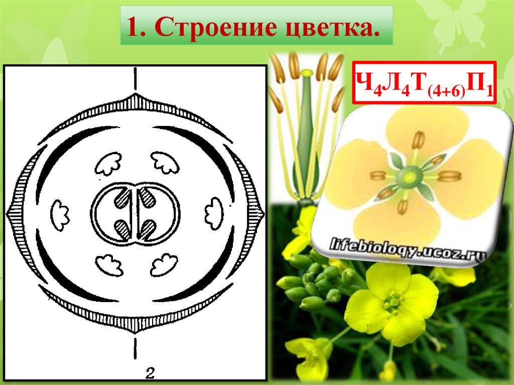 1. Строение цветка.Ч4Л4Т(4+6)П1