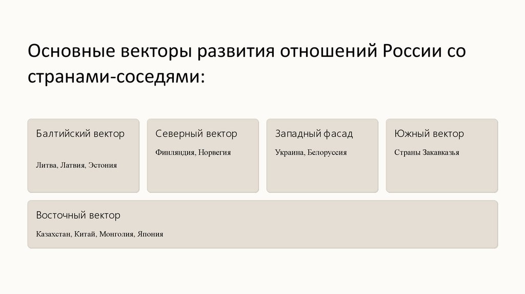 Основные векторы развития отношений России состранами-соседями: