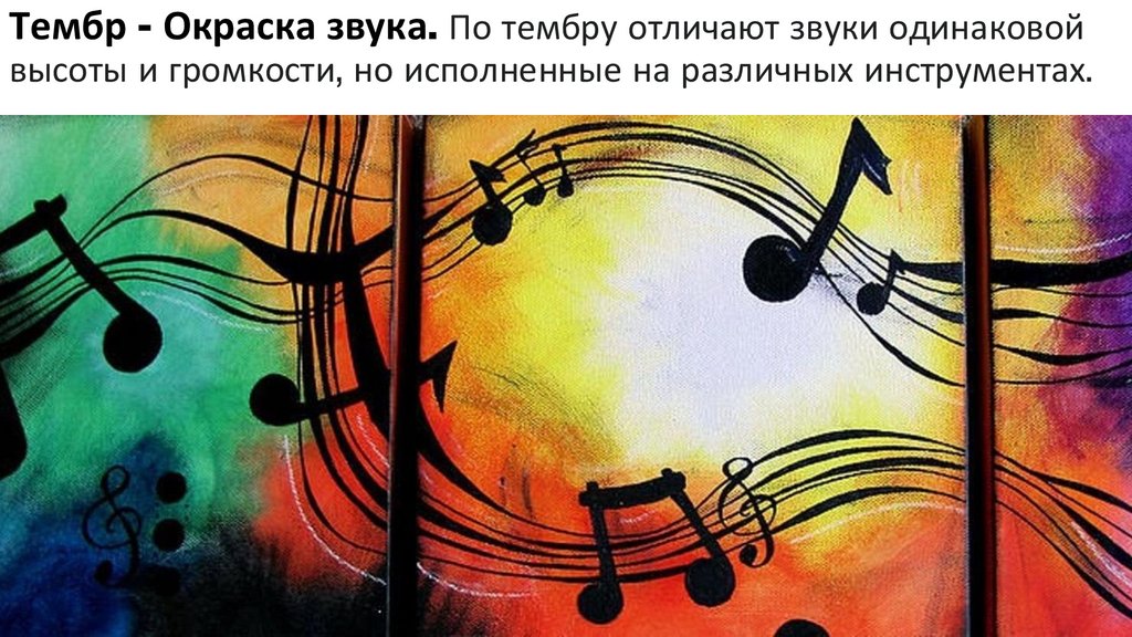 Тембр - Окраска звука. По тембру отличают звуки одинаковойвысоты и громкости, но исполненные на различных инструментах.