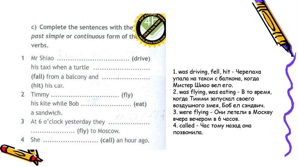 1. was driving, fell, hit - Черепахаупала на такси с балкона, когда