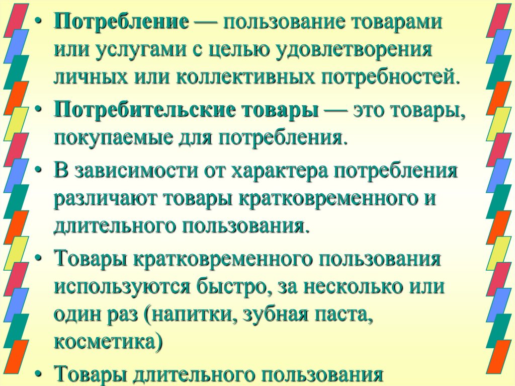 • Потребление — пользование товарамиили услугами с целью удовлетворения
