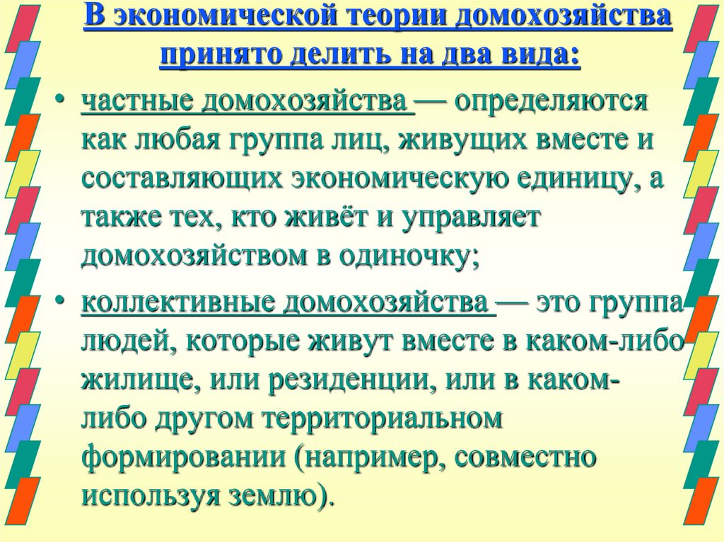 • Коллективные домохозяйства, вотличие от частных, могут быть