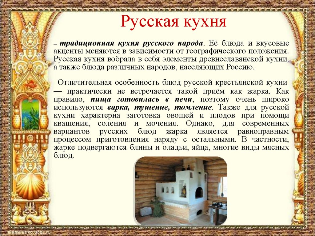 Русская кухнятрадиционная кухня русского народа. Её блюда и вкусовые