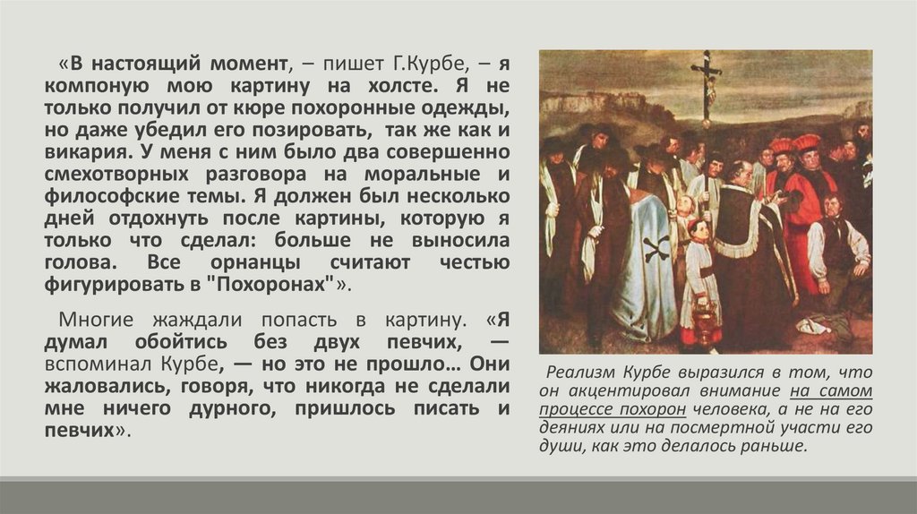 «В настоящий момент, – пишет Г.Курбе, – якомпоную мою картину на холсте. Я не
