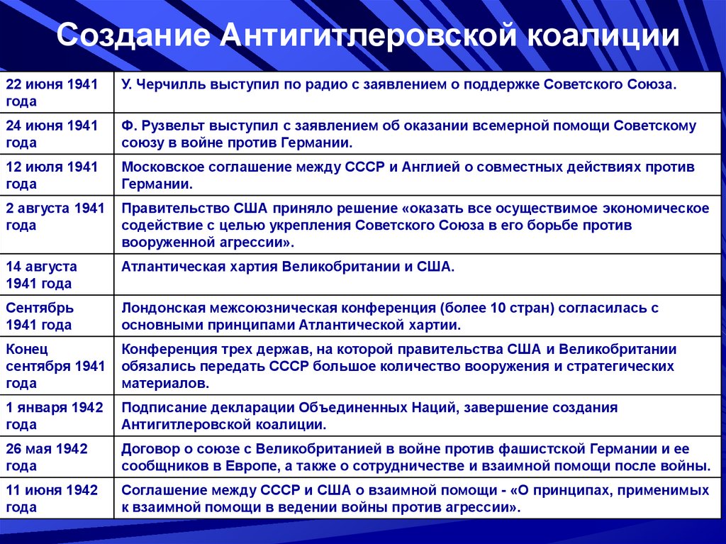 Создание Антигитлеровской коалиции22 июня 1941