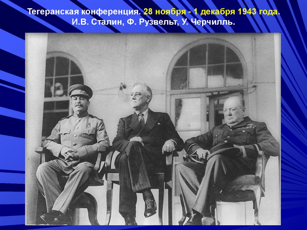 Тегеранская конференция. 28 ноября - 1 декабря 1943 года.И.В. Сталин, Ф. Рузвельт, У. Черчилль.