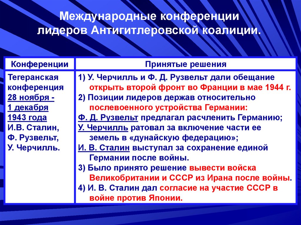 Международные конференциилидеров Антигитлеровской коалиции.