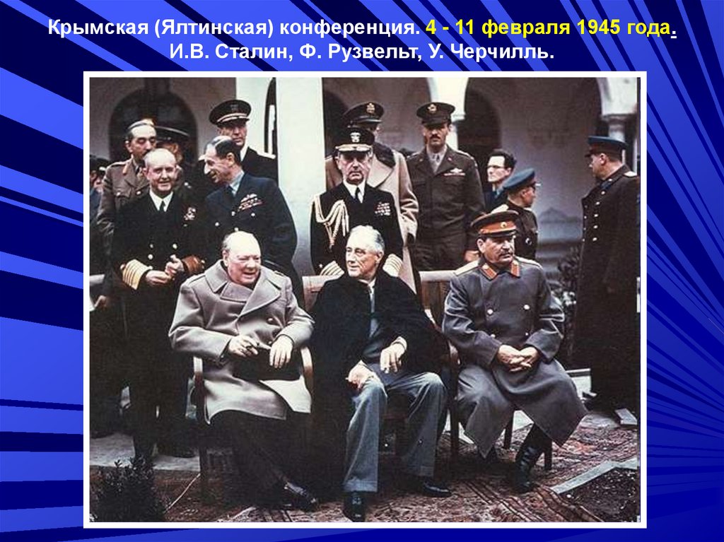 Крымская (Ялтинская) конференция. 4 - 11 февраля 1945 года.И.В. Сталин, Ф. Рузвельт, У. Черчилль.