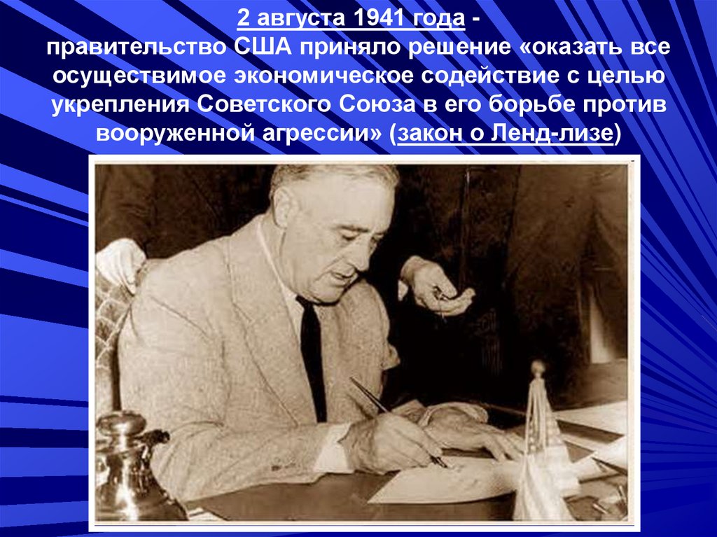 2 августа 1941 года правительство США приняло решение «оказать всеосуществимое экономическое содействие с целью