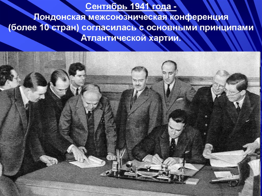 Сентябрь 1941 года Лондонская межсоюзническая конференция(более 10 стран) согласилась с основными принципами