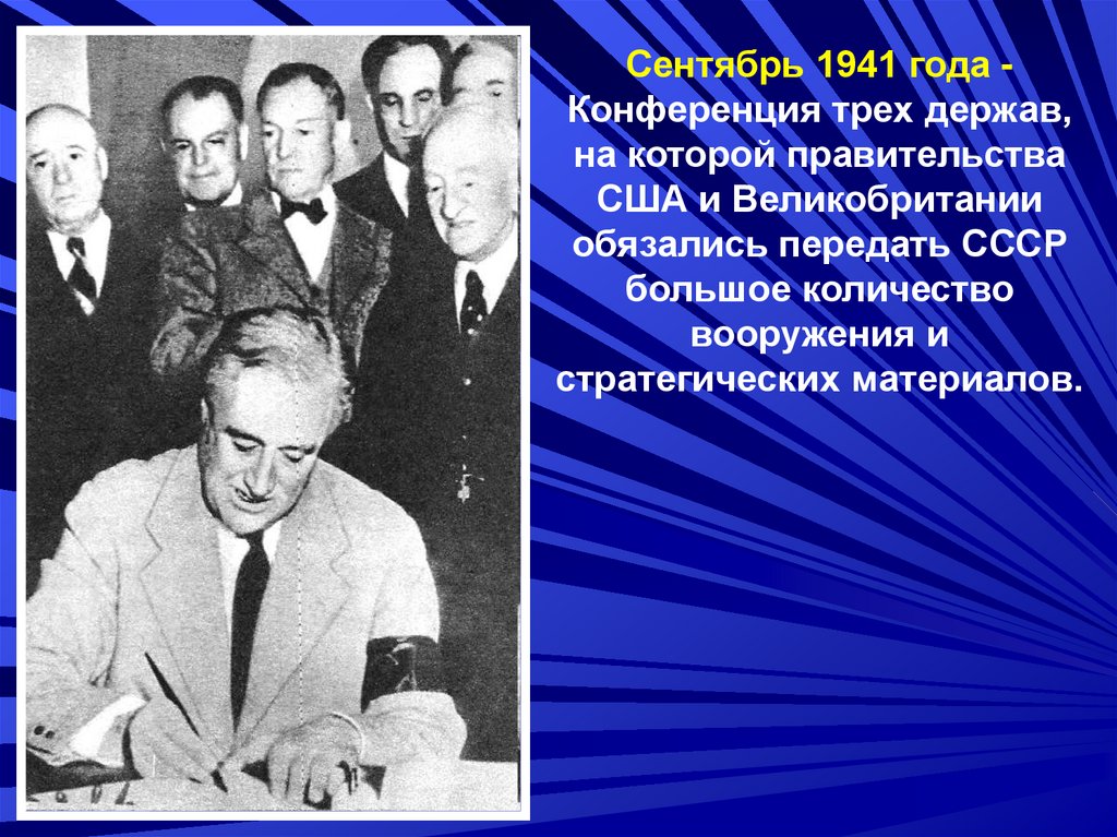 Сентябрь 1941 года Конференция трех держав,на которой правительства