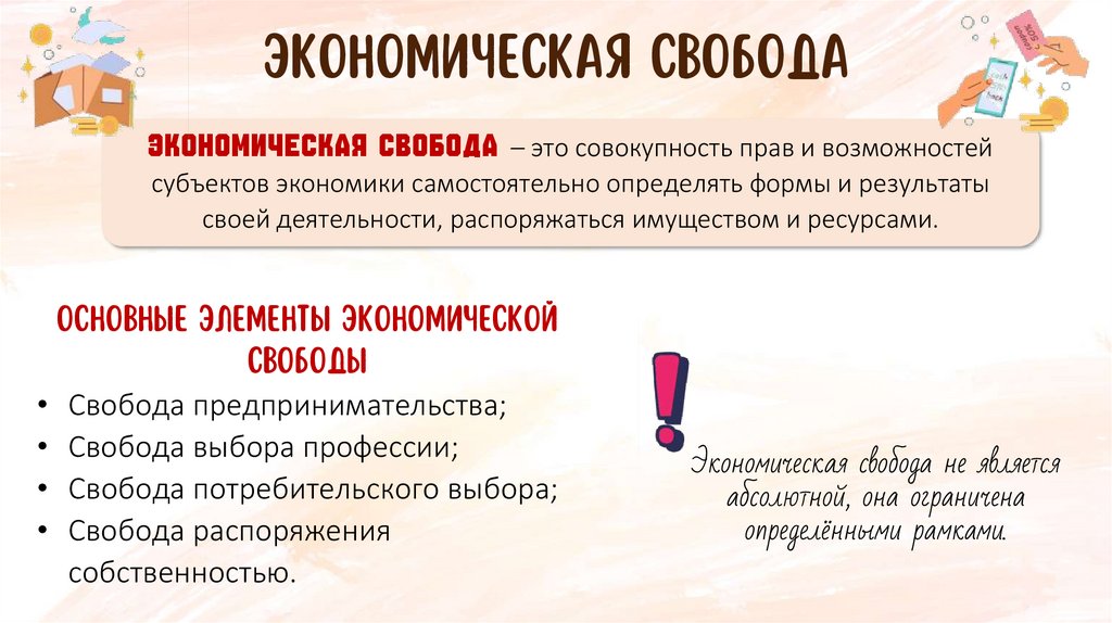 Экономическая свободаЭкономическая свобода – это совокупность прав и возможностей