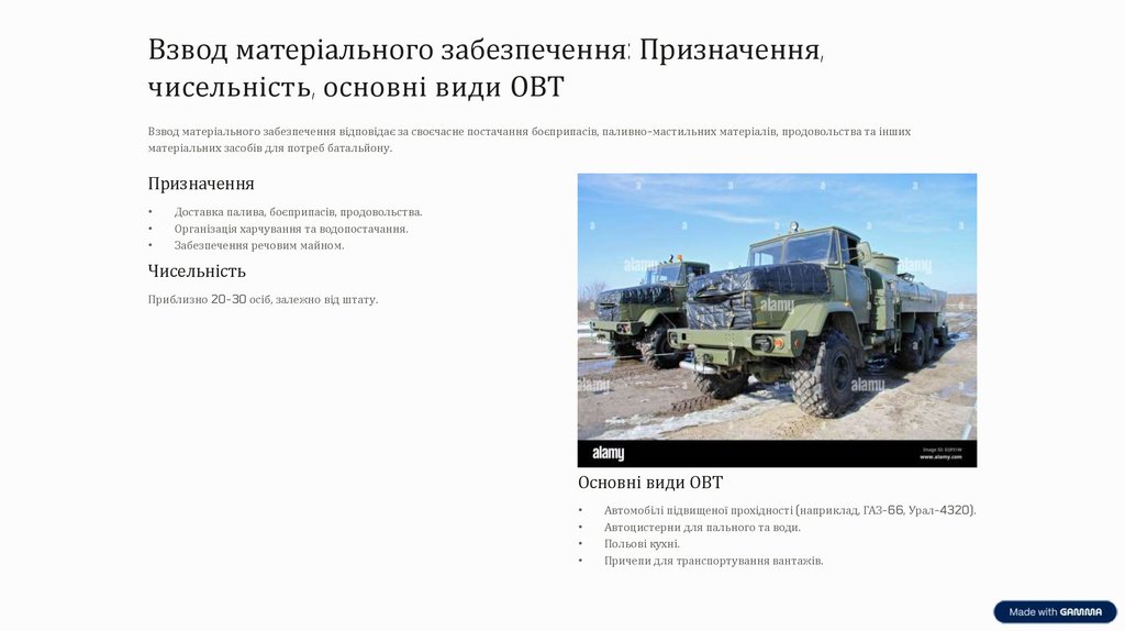 Взвод матеріального забезпечення: Призначення,чисельність, основні види ОВТ