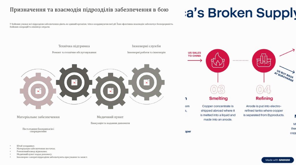 Призначення та взаємодія підрозділів забезпечення в боюУ бойових умовах всі підрозділи забезпечення діють як єдиний організм, чітко координуючи свої дії. Їхня ефективна взаємодія забезпечує безперервність