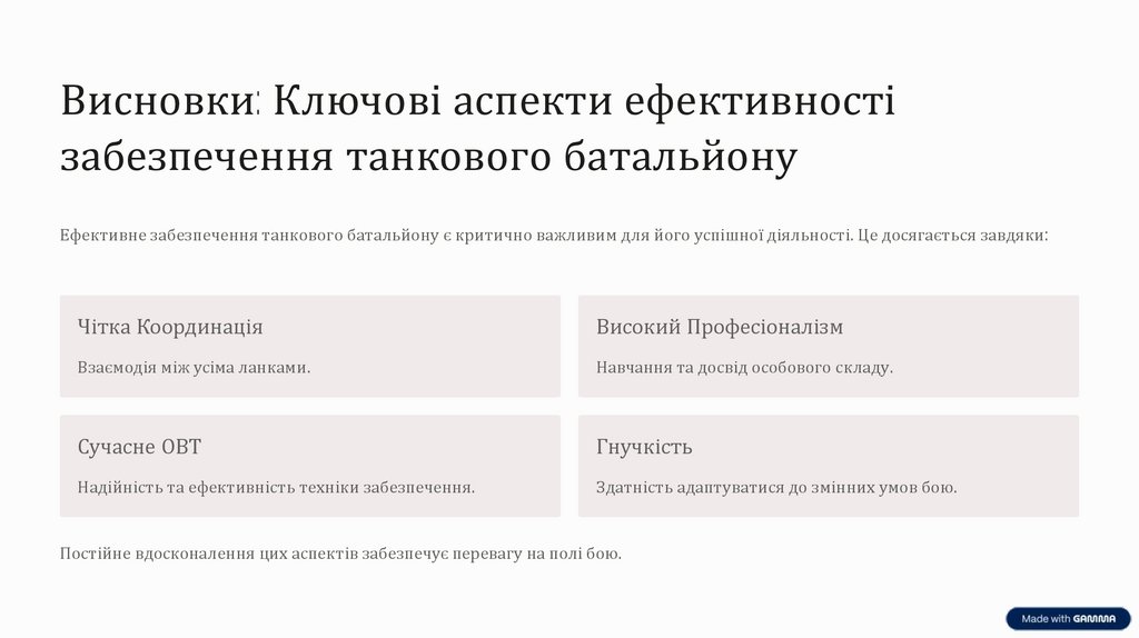 Висновки: Ключові аспекти ефективностізабезпечення танкового батальйону