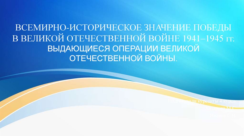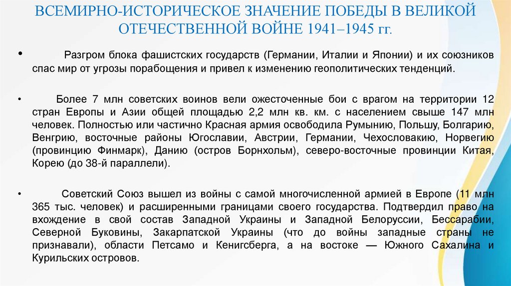ВСЕМИРНО-ИСТОРИЧЕСКОЕ ЗНАЧЕНИЕ ПОБЕДЫВ ВЕЛИКОЙ ОТЕЧЕСТВЕННОЙ ВОЙНЕ 1941–1945 гг.
