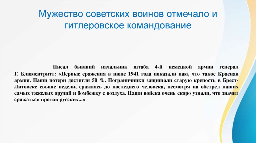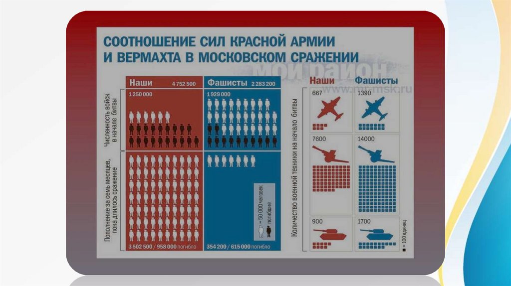 • Советский народ стал главной силой преградившей путь к победе