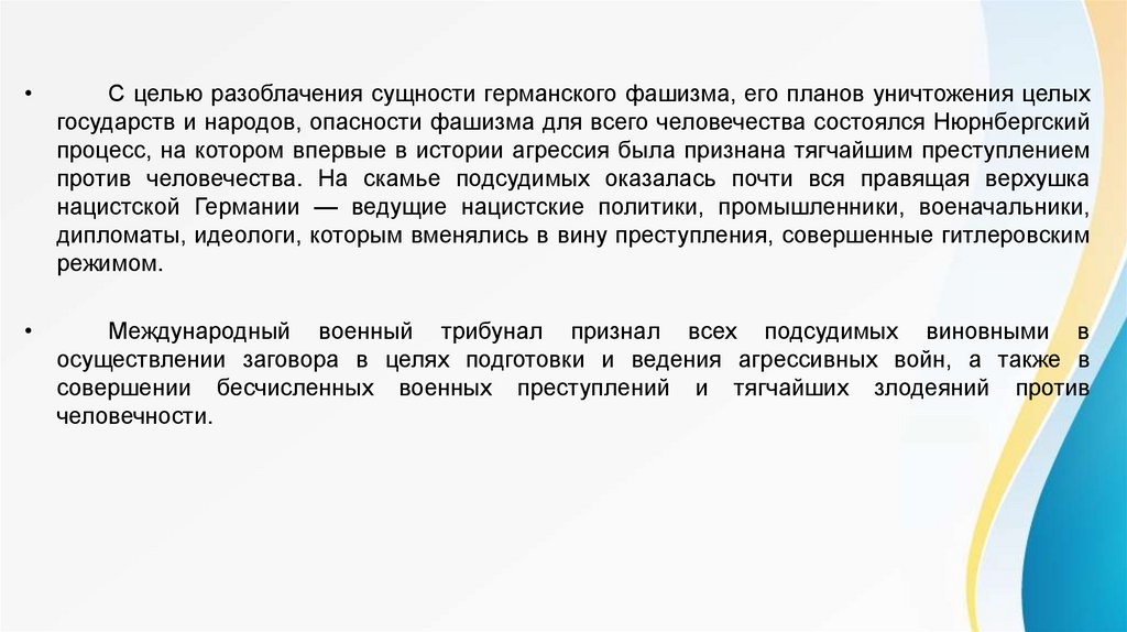государств и народов, опасности фашизма для всего человечества состоялся Нюрнбергский