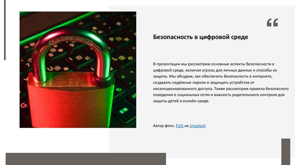 Безопасность в цифровой средеВ презентации мы рассмотрим основные аспекты безопасности в