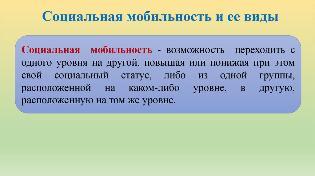 Социальная мобильность и ее видыСоциальная мобильность - возможность переходить с