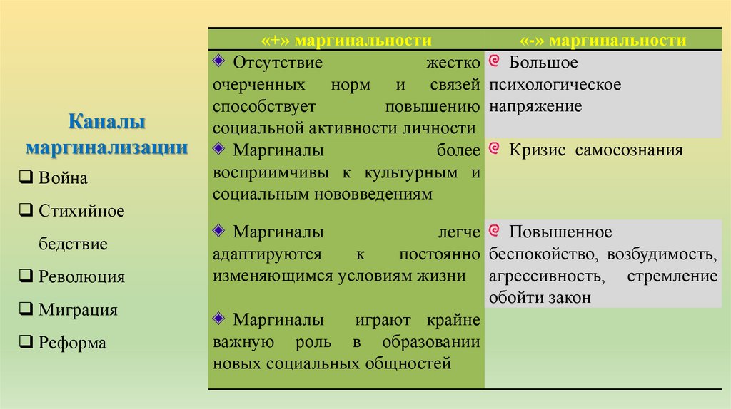 «+» маргинальности
