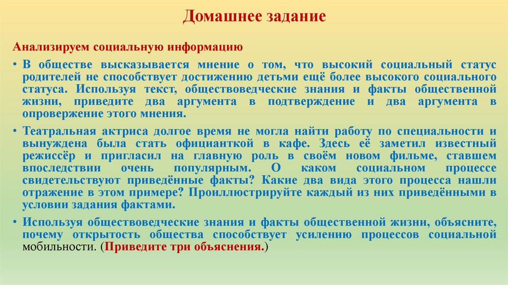 статуса. Используя текст, обществоведческие знания и факты общественной