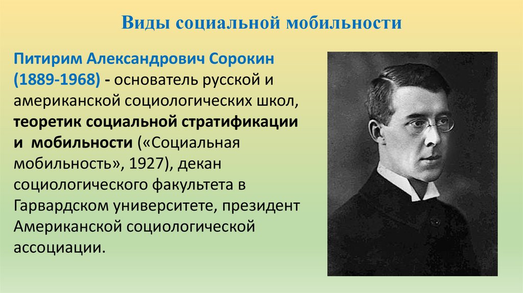 Виды социальной мобильностиПитирим Александрович Сорокин