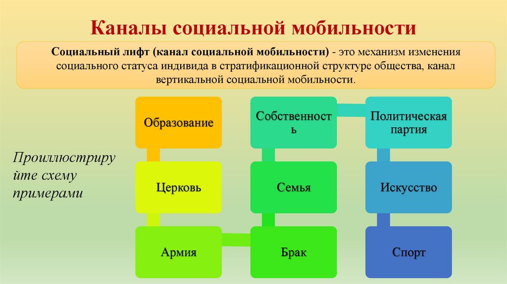 Каналы социальной мобильностиСоциальный лифт (канал социальной мобильности) - это механизм изменения