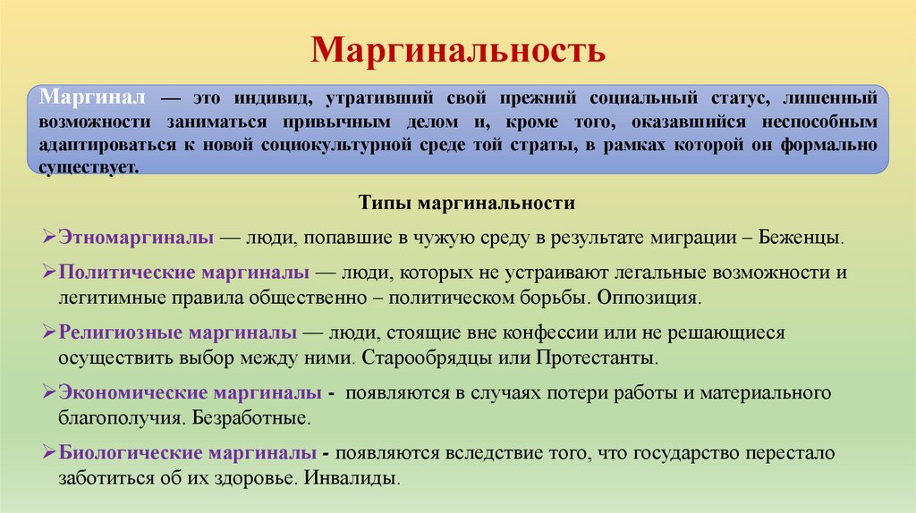 Биологические маргиналы - появляются вследствие того, что государство перестало
