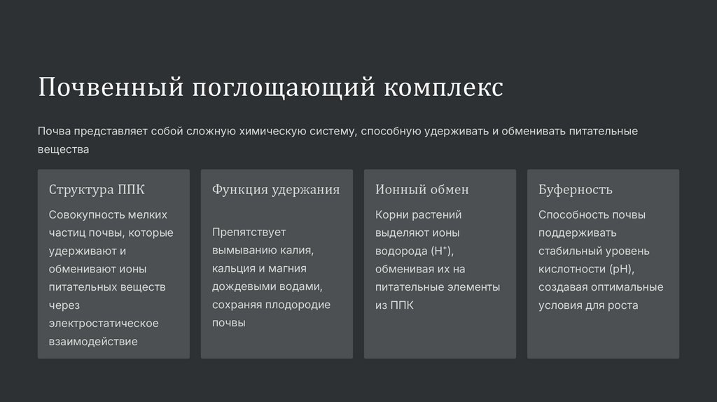 Почвенный поглощающий комплексПочва представляет собой сложную химическую систему, способную удерживать и обменивать питательные