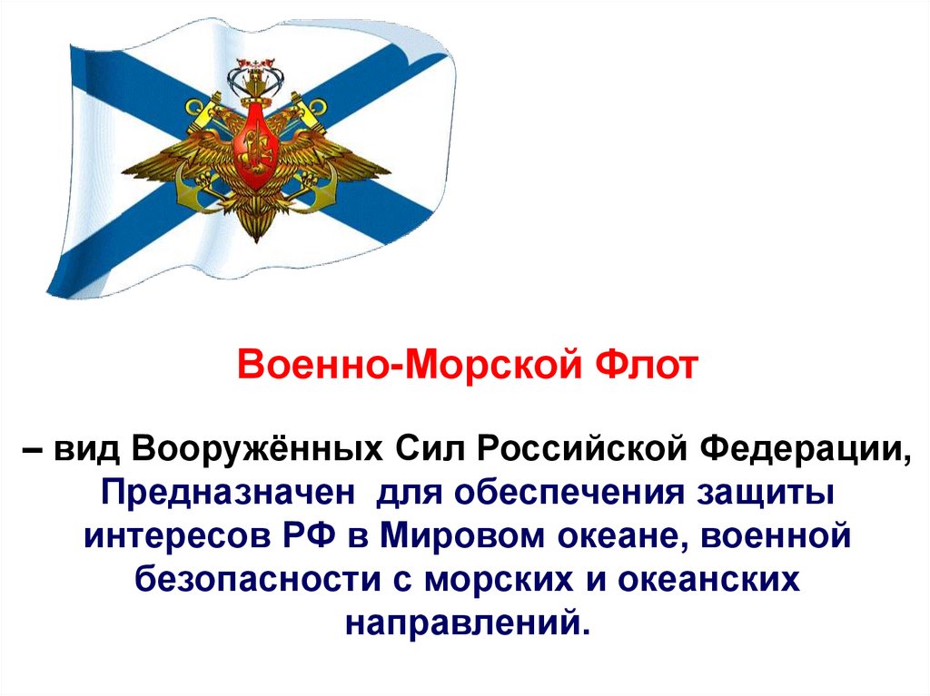 Военно-Морской Флот– вид Вооружённых Сил Российской Федерации,