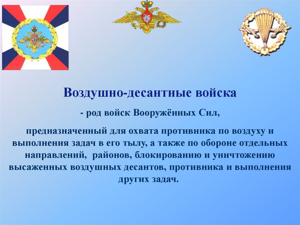 Воздушно-десантные войска- род войск Вооружённых Сил,