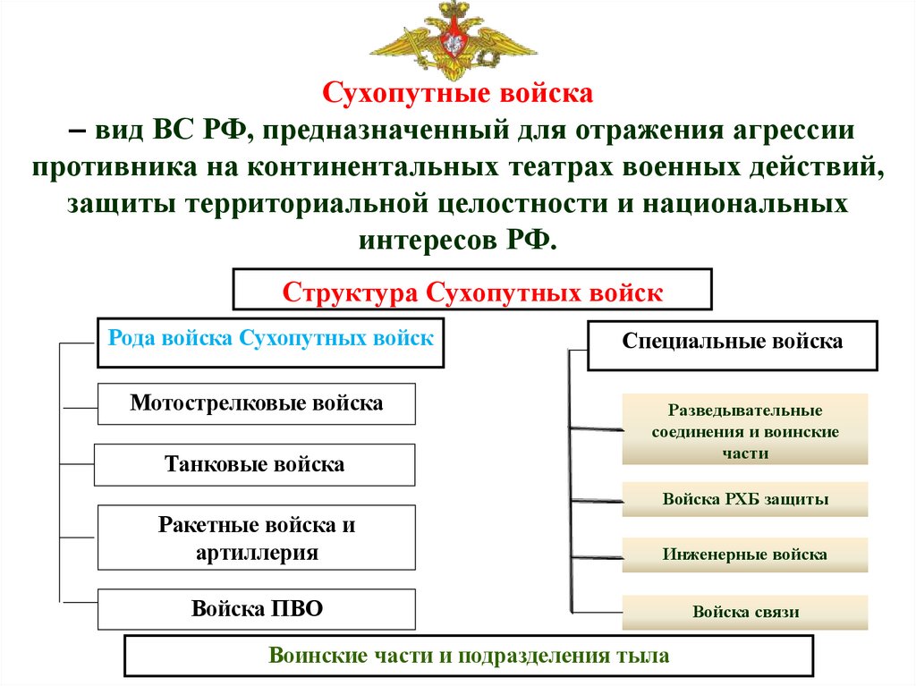 Сухопутные войска– вид ВС РФ, предназначенный для отражения агрессии