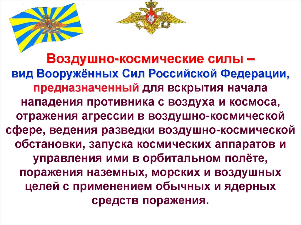 Воздушно-космические силы –вид Вооружённых Сил Российской Федерации,