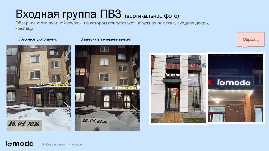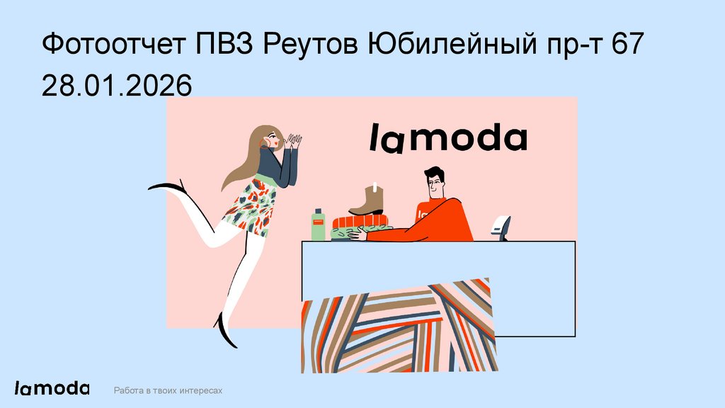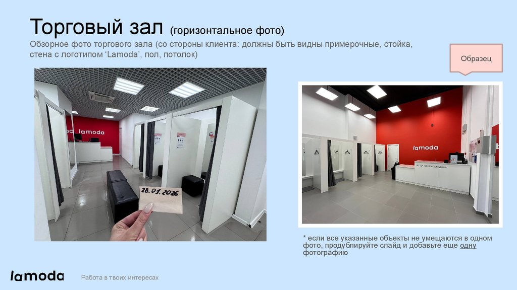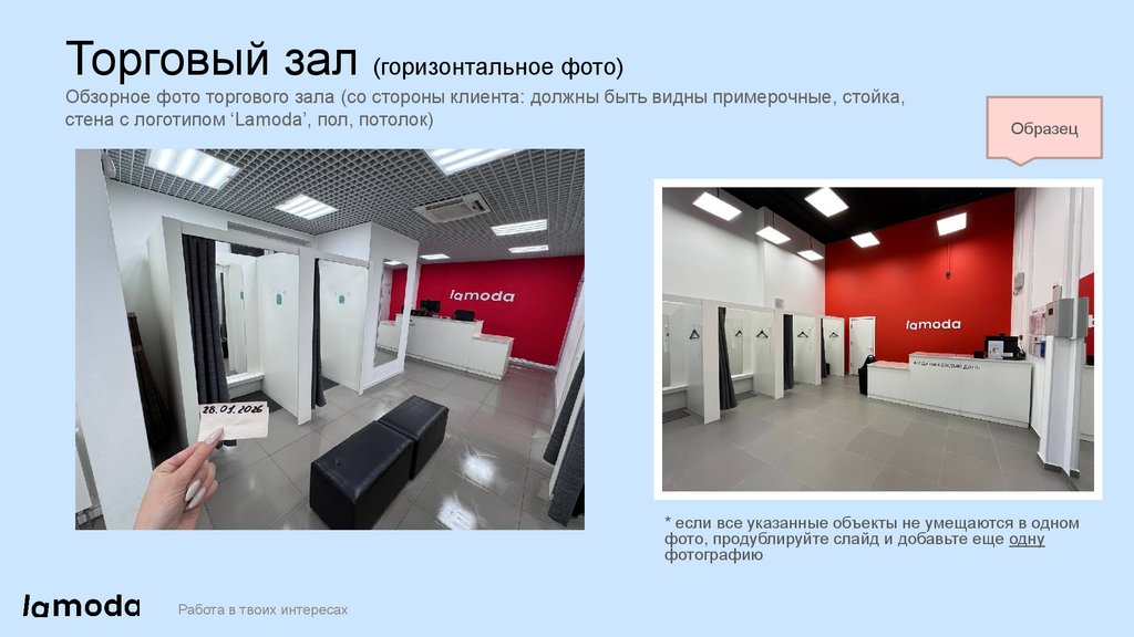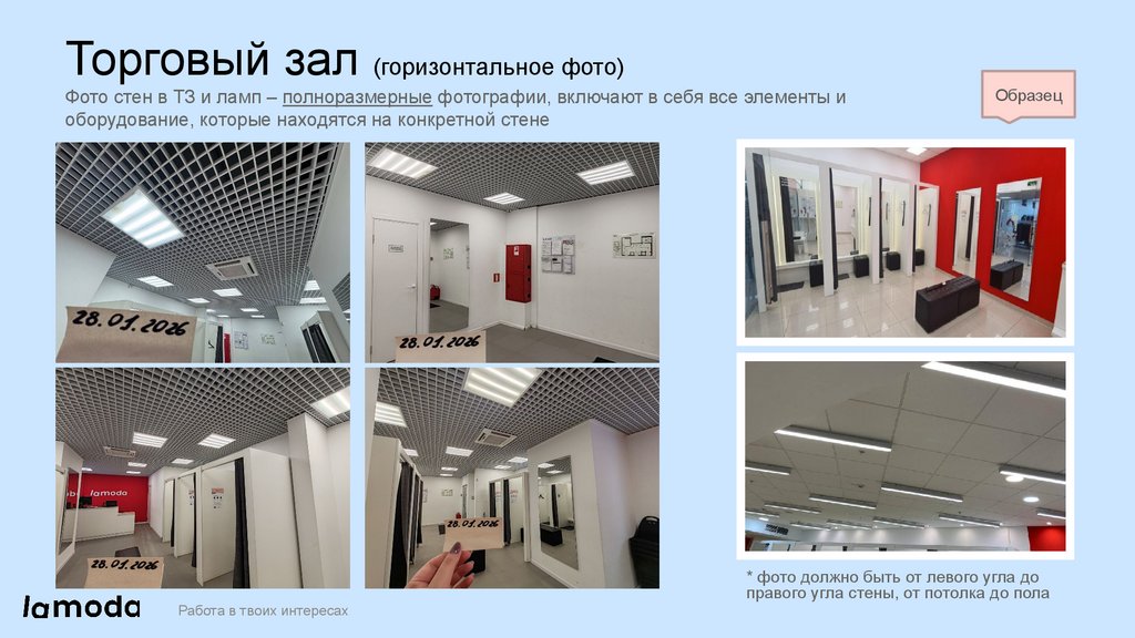 стена с логотипом ‘Lamoda’, пол, потолок)