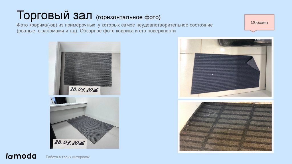Торговый зал (горизонтальное фото)Фото коврика(-ов) из примерочных, у которых самое неудовлетворительное состояние