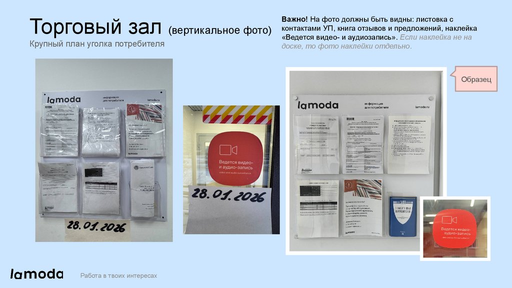 Торговый зал (вертикальное фото)Крупный план уголка потребителя