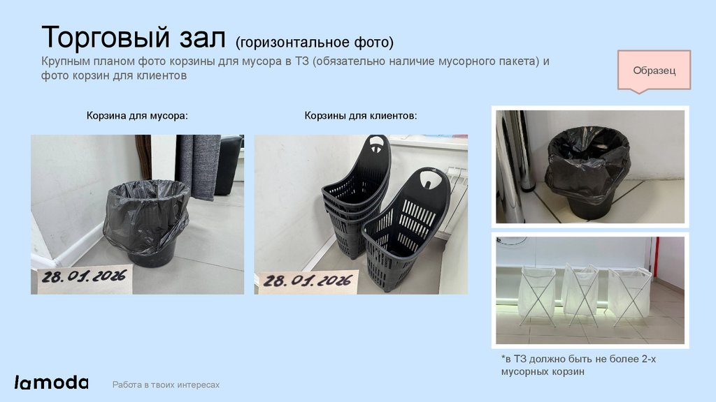 Торговый зал (горизонтальное фото)Крупным планом фото корзины для мусора в ТЗ (обязательно наличие мусорного пакета) и