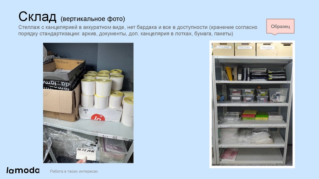 Склад (вертикальное фото)Стеллаж с канцелярией в аккуратном виде, нет бардака и все в доступности (хранение согласно
