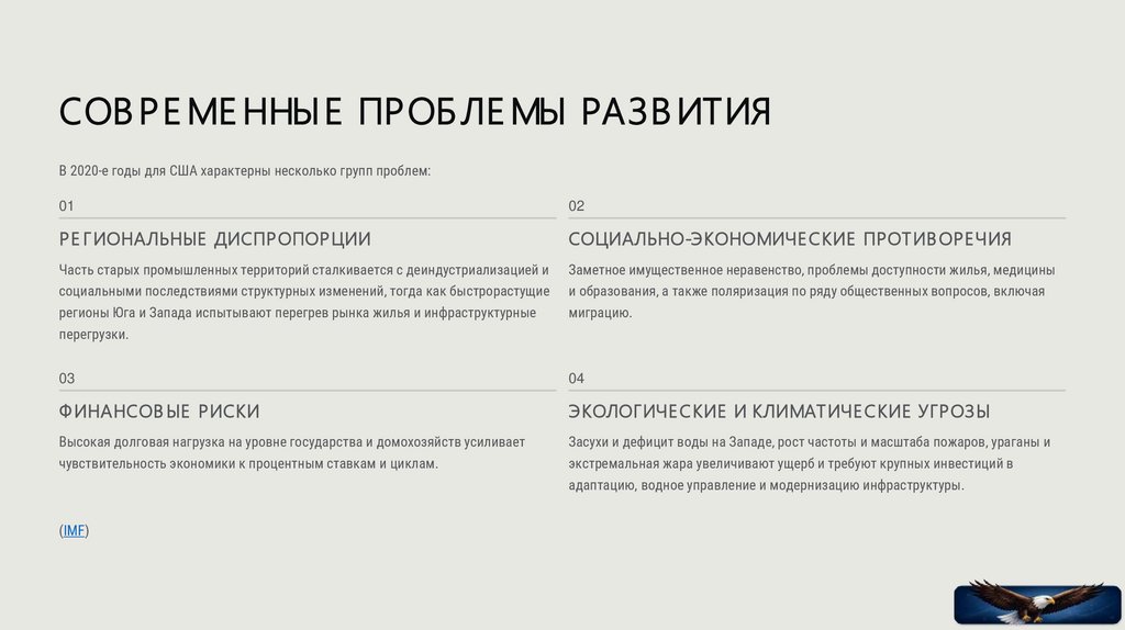 СОВ Р Е МЕ ННЫ Е ПРОБ ЛЕ МЫ РАЗВ ИТИЯВ 2020-е годы для США характерны несколько групп проблем: