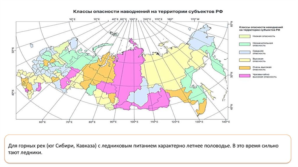 Для горных рек (юг Сибири, Кавказа) с ледниковым питанием характерно летнее половодье. В это время сильнотают ледники.