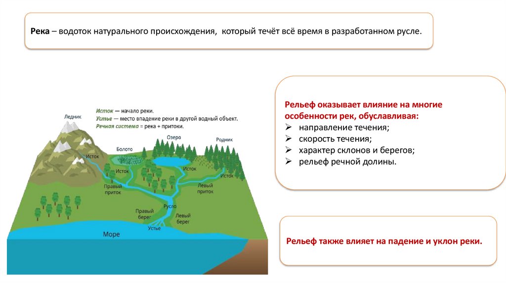 Падение и уклон реки с примеромКаждая река имеет начало – исток, а также место впадения –