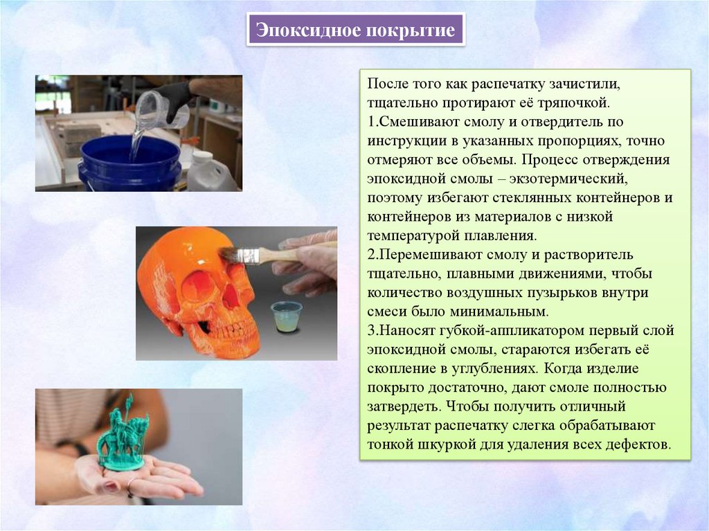 Эпоксидное покрытиеПосле того как распечатку зачистили,