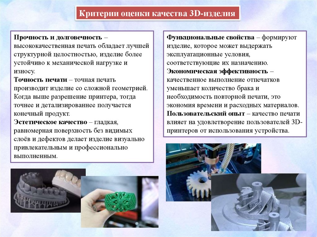 Критерии оценки качества 3D-изделияПрочность и долговечность –